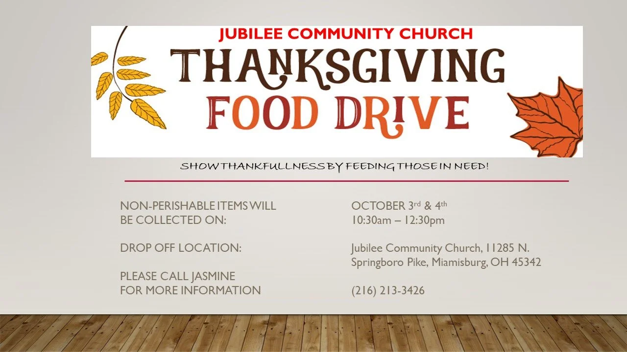 • Jubilee Community Church 11285 North Springboro Pike Miamisburg, OH, 45342 United States (map)